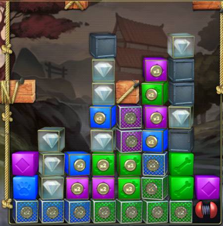 You've got the rechargeable rocket boost on this level, but honestly you're primarily going to use it to deal with this left hand column. Try to get as many of these left hand column blocks on the screen at once before you use your rocket, so that you can save as much rocket power as you can for the final push.