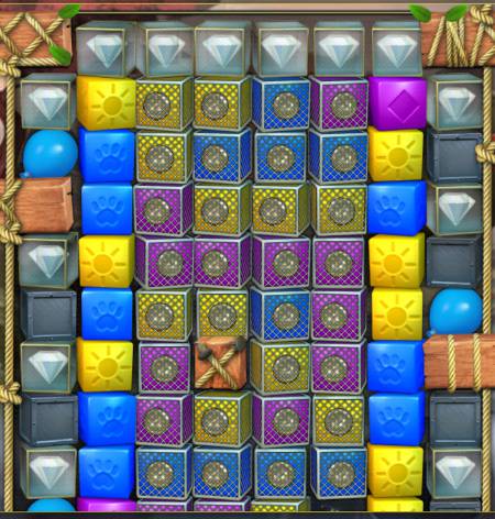 The main challenge here, though, is this towering pile of mesh blocks. These can be difficult under normal circumstances, but the requirement on Pet Rescue Saga level 111 that you clear them all is particularly hard.