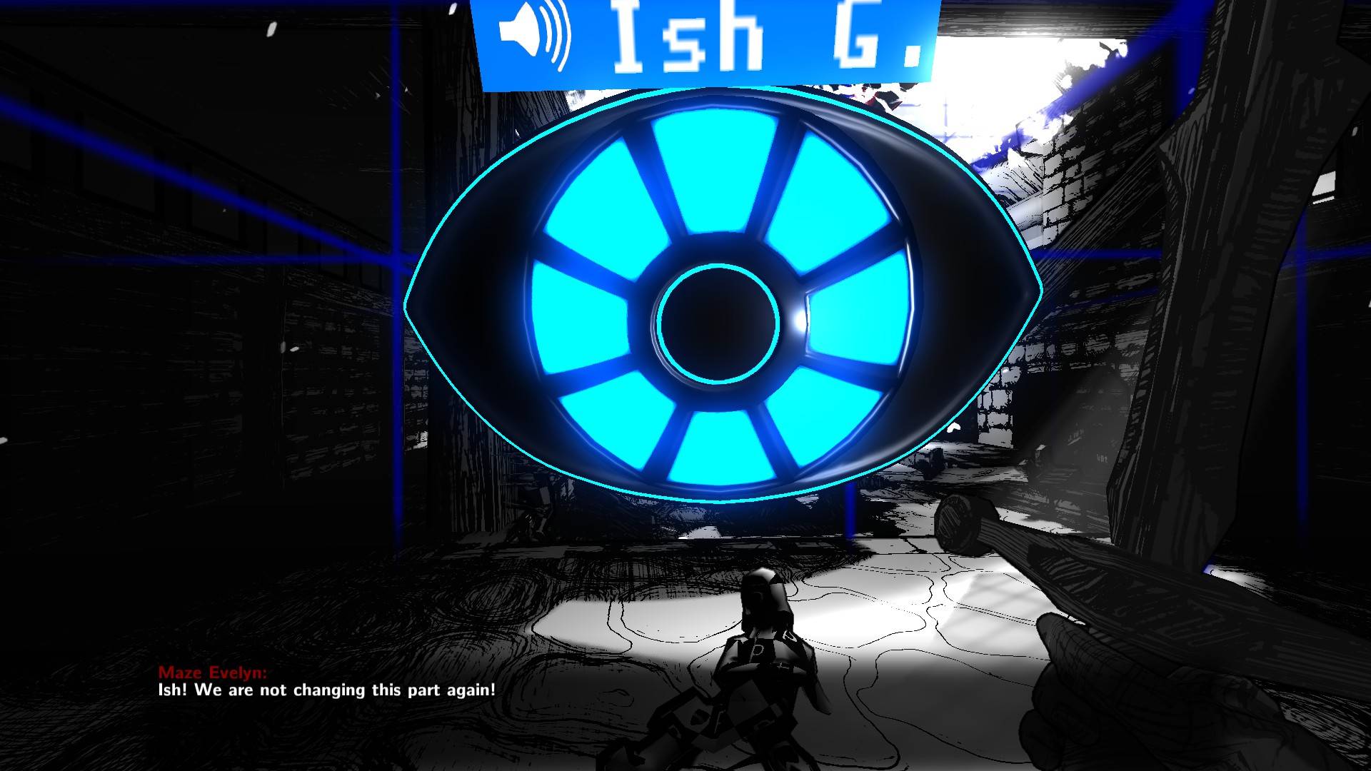 Next is Maze Evelyn, played by Karen Dyer. A former pro-gamer, she could be thought of as the voice of the team making the game. She wants it to be fun, and is concerned about interactivity and combat. This puts her at odds with Ish, as Ish feels like his vision is critical and can't be compromised for anything.