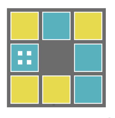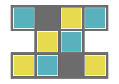 "We started with game pieces that were two sided. The earliest iteration of the game was prototyped with pieces of cardboard, with bright paper taped to one side. In the beginning, we envisioned a game where you try to get all the pieces to be a matching color. But it is more interesting to match up just one row or column at a time— that way both colors are represented throughout gameplay. We really liked the quality of two opposites within the same game piece, and that neither side (blue nor yellow) is more important than the other; just that they are different but equally useful."