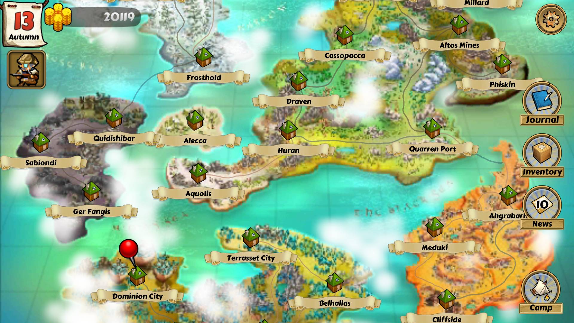 I do have a few complaints about Wizards & Wagons, though. One is that the game's pace can be somewhat slow and uneven. There's a distinct advantage to travelling the same trade route over and over, ad nauseum. Some of the most expensive stuff in the game takes a rather unreasonable amount of time to acquire, and after a while I was really craving some way to speed up time or skip past unprofitable towns on my trade route.